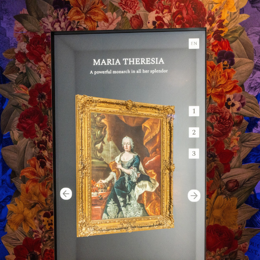 Hologramová inštalácia približuje dvoch mocných panovníkov: vzácne portréty cisárovnej Márie Terézie a cisára Františka Štefana Lotrinského možno obdivovať ako pôsobivé 3D objekty a skúmať ich do detailov pomocou funkcie zoom-in.